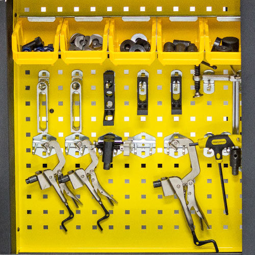 Catalog number: TDJKM-100A Features: ●This is a complete welding table system that dramatically reduces the time and effort required to make a welding fixture each time you perform welding work. ●The tabletop has highly accurate 16mm (50mm interval) holes, and by using the included accessories that fit this size, you can quickly and securely fix a wide variety of workpieces and perform stable welding work repeatedly. ●The tabletop reduces the burden of bending over when working. ●The tabletop is nitrided to reduce spatter adhesion and is highly resistant to corrosion and durable. Also, if one side wears out, it can be turned over and used again. Applications: ●For various welding work. Specifications: ●Tabletop width x depth x thickness (mm): 1200 x 750 x 16 ●Main body height (mm): 750-800 ●Tabletop hole (mm): 16 ●Thickness (mm): 16 ●Set number: 67 ●Tabletop width x depth x thickness (mm): 1200 x 750 x 16 ●Main body dimensions (mm) Height: 750-800 ●10 adjuster bolts included Material/Finish: ●Carbon steel (S45C) Set contents/accessories: ●Table body ●Adjustable ball lock bolt 24mm-28mm (T65055) x 10 ●Pin bolt 16mm (T64201) x 2 ●Freestanding C-clamp (PT09K) x 2 ●Freestanding C-clamp (PT07K) x 2 ●Insert clamp (UDN6150) x 2 ●Short stopper (T64203) x 4 ●Long stopper (T64205) x 4 ●V-block (T64216) x 8 ●Magnetic type V-block (T64217) x 2 ●V spacer (T64211) x 4 ●D-stop bar (T60630) x 8 ●Magnetic rest button (T50737) x 12 ●Angle bracket (T60304) x 2, (T60305) x 2 ●Slide clamp (TCX6210) x 2 Note: *This is a heavy item packed in a wooden crate. *Delivery will be made to the truck (forklift required).