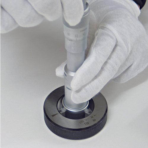 Catalog number: RG-25.0 Features: ●Master gauge for adjusting the zero point of internal diameter measuring instruments. ●Sub-zero treatment and stabilization treatment have been performed to prevent deterioration over time. ●Inspection report included. Uses: ●As a master for internal diameter measuring instruments. Specifications: ●Nominal dimensions (mm): 25 ●Thickness (mm): 14 ●Outer diameter (mm): 53 ●Inner diameter tolerance: ±1.0 μm (1 or more to 30 or less), ±1.5 μm (more than 30 to 50 or less), ±2.0 μm (more than 50 to 100 or less), ±5.0 μm (more than 100 to 200 or less) ●Surface roughness: Within Ra0.1 μm ●Straightness: 0.05/φ100 ●Parallelism: Within 0.015 mm ●Inspection report included ●Circularity: Within 0.5 μm (1 or more to 30 or less), 0.8 μm or less (more than 30 to 50 or less) ●Hardness: 653 to 772 HV Material/Finish: ●Alloy tool steel Note: ●Special sizes are also available