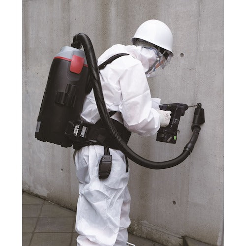 Catalog number: 008.53.600 Features: ●Can be used for asbestos removal work. ●Equipped with a HEPA14 filter bag (high-performance filter that meets European standards), it can capture even fine dust particles. ●Suitable for work at high altitudes such as construction sites, scaffolding, and work on stepladders where movement is difficult due to lack of power. ●Since it is cordless, you can be free from the hassle of cords while working. ●The shoulder and hip belts with protective pads are ergonomically designed to reduce strain on the body. ●Two 18V battery packs are included as standard. ●The included charger can quickly charge two batteries at the same time. (Charging time = approximately 1 hour) Uses: ●For preventing dust from scattering during air conditioning and electrical equipment work. ●For peeling exterior wall paint. ●For preventing dust from scattering when drilling holes in walls, ceilings, floors, etc. ●For work on narrow scaffolding and cleaning work at construction sites. ●For cleaning work on stairs and passageways. Specifications: Dust collection capacity (L): 6 Maximum vacuum pressure (kPa): 16 Maximum air volume (m3/min): 1.74 Noise level (dB): 67 Width (mm): 260 Depth (mm): 216 Height (mm): 496 Voltage (V): 36 Capacity (Ah): 5x2 Type: Vacuum cleaner Backpack-style Rechargeable Material/Finish: Plastic Set contents/Accessories: Stainless steel telescopic pipe D32 mm, suction hose 1.3 m, filter basket, HEPA14 fleece filter bag, crevice/brush nozzle, combination nozzle 280 mm, fixed hook, quick charger (dual quick charger), lithium-ion battery 18V 5Ah x 2 Note: We cannot provide maintenance for equipment used at asbestos or hazardous substance removal sites. Replacement parts will be provided, so maintenance is the responsibility of the user. ●We recommend that you frequently replace the fleece filter bag. ●This unit is for dry use only. Do not suck up water (liquid) or anything containing water (liquid). Moisture may get into the motor inside the dust collector, causing breakdowns or malfunctions. ●If you accidentally suck up water (liquid) or anything containing water (liquid), immediately remove the fleece filter bag.