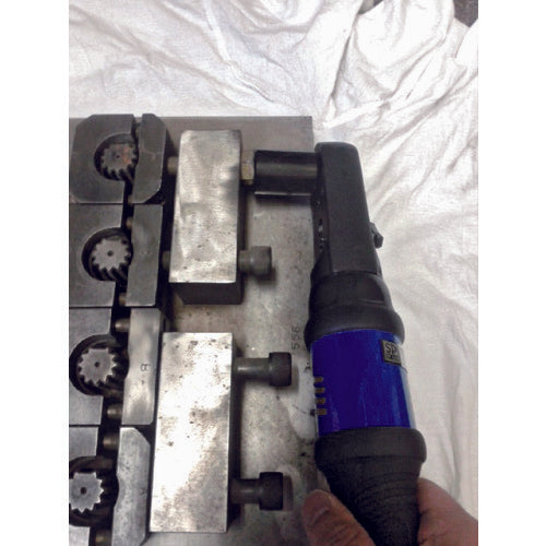 Catalogue number: SP-7265RP Features: ● Ratchet with built-in impact mechanism and low reaction force. ● Possible to switch between forward and reverse at hand, so if locked during work, reverse can be done with one hand. (SP-7265RP) Uses: ● For automobile maintenance work. Specifications: ● Capable bolt diameter (mm): 10 ● Socket drive size (mm): 9.5 ● Maximum tightening torque (N・m): 35 ● No-load speed (min[[の−1]]): 400 ● Air consumption ([[M3]]/min): 0.4 ● Hose attachment port: NPT1/4 ● Exhaust: Rear ● Total length (mm): 192 ● Operating air pressure: 0.62MPa