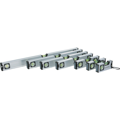 Catalog number: SV200VM Features: ● V-shaped measuring surface that can be easily installed on top of pipes and comes with a magnet. ● Protective rubber with excellent impact resistance is attached to both ends. ● Comes with a carabiner that is convenient for attaching and detaching to a tool bag, etc. ● I-shaped monocoque frame that is difficult to deform. ● Uses a high-precision bubble tube with a precision of ±1.00 mm/m. Applications: ● For measuring horizontal, vertical, and 45° angles. Specifications: ●Color: Silver ●Length (mm): 200 ●Height (mm): 50 ●Thickness (mm): 22 ●Magnets: 2 places ●Body color: Silver ●Vibrous tube color: Green ●Accuracy: Within ±1.00mm/m = ±0.0573° ●Sensitivity: 0.5mm/m = 0.0286° ●Measuring surface groove: V-groove ●Side protector: Yes ●With 45° gradient ●Body: Aluminum alloy ●Vibrous tube: Acrylic resin Material/Finish: ●Body: Aluminum alloy ●Vibrous tube: Acrylic resin (PMMA)