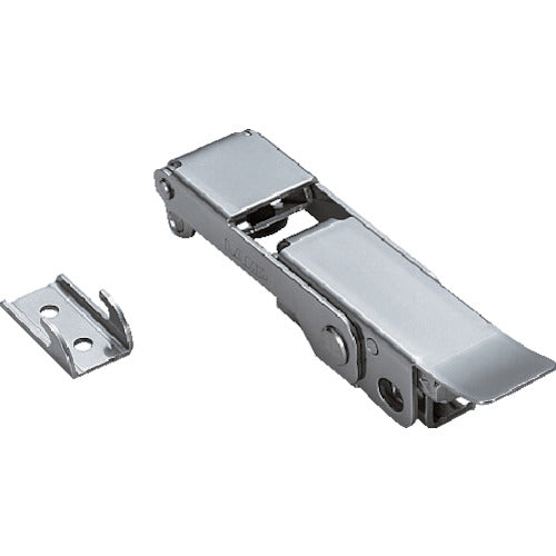 Catalogue number: STF-CP140 Features: ●The push tool pushes in the door, allowing for clamping perpendicular to the mounting surface. ●The clamping force can be easily adjusted. ●The safety lock is automatically engaged. ●The lock can be released by pressing the safety lock. ●Can be used with a padlock. Applications: ●For use with various industrial equipment. Specifications: ●Allowable load (N): 600 ●Allowable load (kgf): 61 ●Clamping force (N): 245 ●Dimensions (mm) H: (136.4) ●H (mm): (136.4) ●Allowable load: 61 ●Dimensions (mm) d: None ●Dimensions (mm) D1: None ●Dimensions (mm) M: None ●Dimensions (mm) D3: None ●Dimensions (mm) Dp: None ●T (mm): None ●Dimensions (mm) D2: None ●Adjustable clamping force Material/Finish: ●Stainless steel (SUS304)