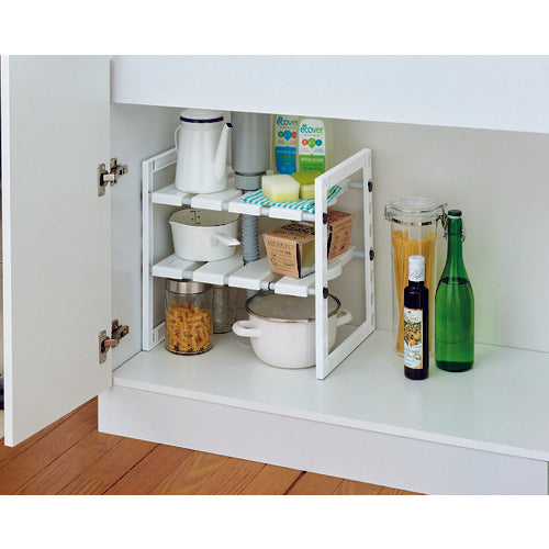 Catalog number: 110010765 Features: ●The bar can be easily installed by simply hanging it on the circular hook. ●If you want to change the height depending on the items you want to store, it is easy to change it. ●Ideal for kitchen and microwave oven sizes. ●Kitchen storage that is easy to assemble and adjust, making your kitchen "tidy and tidy". ●The shelf is shaped to fit the drain pipe, making it less likely to create gaps and maximizing the space. Specifications: ●Width (mm): 330-450 ●Depth (mm): 300 ●Height (mm): 400 ●Load capacity (kg): 10 ●Color: White Material/Finish: ●Shelf, hook, ring: Polypropylene ●Resin frame: Styrene resin ●Rubber feet: Elastomer ●Pipe: Steel (epoxy powder coating)