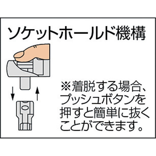 Catalog number: RH43K Features: ●Easy-to-use socket hold mechanism. Applications: ●Tightening and loosening bolts and nuts. Specifications: ●Number of teeth (pieces): 48 ●Drive socket size (mm): 12.7 convex ●Total length (mm): 255 Material/Finish: ●Structural steel