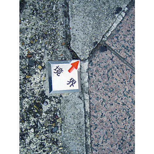 Catalogue number: TCL-19 Features: ● For use at survey sign points. ● Recessed type that uses the included mounting bolts. Applications: ● For survey sign points. Specifications: ● Height (mm): 50 ● Width (mm): 50 ● Thickness (mm): 10 ● Mounting method: Recessed type ● Recessed type Material/Finish: ● Plate: Aluminum die-cast ● Mounting bolts: Steel (chromate) Set contents/Accessories: ● Mounting bolts x 3