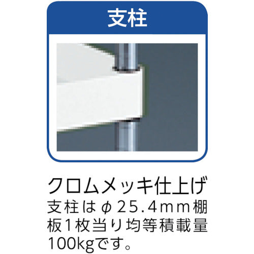Catalog number: PEW-R973-W Features: ●Antibacterial powder coating allows for long-term, clean use. (SIAA antibacterial ISO22196: JP0122258A0002X) ●Shelf boards can be used on both sides, and one-touch bushings make assembly easy. Applications: ●For factories, warehouses, stores, etc. ●For storing and keeping small items such as tools and documents. Specifications: ● Width (mm): 750 ● Depth (mm): 500 ● Height (mm): 772 ● Effective width (mm): 668 ● Pipe diameter (mm): φ25.4 ● Number of shelves (tiers): 3 ● Uniform load capacity (kg/tier): 100 ● Maximum load capacity (kg/unit): 500 ● Shelf adjustment pitch (mm): 25 ● Color: White ● Pipe diameter: φ25.4mm ● Spill guard height: 50mm ● Shelf adjustment pitch: 25mm Material/Finish: ● Body: Steel (chrome plated) ● Shelf: Steel (antibacterial powder coating) ● Adjuster: Polyamide (PA)