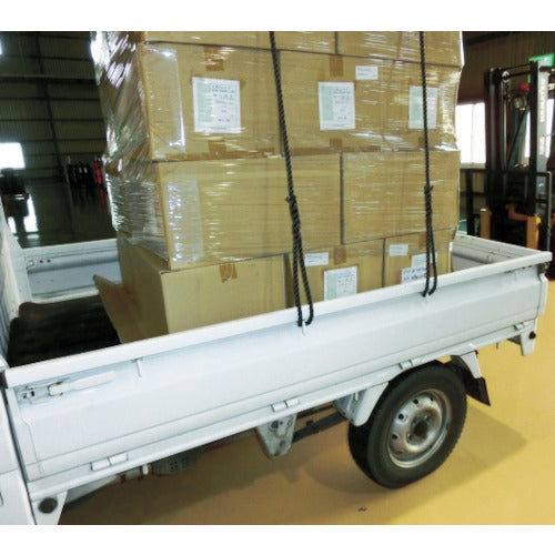 Catalog number: TPP-95 Features: ●Compared to base wire, there are no problems with oil, rust, etc., so it does not damage or stain the cargo. ●Polypropylene has the lightest specific gravity of all fibers and is not hygroscopic. Applications: ●Ideal for fixing, bundling, and pulling work without soiling products in logistics and plants. Specifications: ●Color: Black ●Wire diameter (mm): 9 ●Length (m): 5 ●Packaging form: Vinyl tie Material/Finish: ●Polypropylene (PP) Caution: ●Because the base rope is for fixing, bundling, and pulling, do not use it for lifting and suspending cargo in sling work.