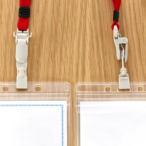 Catalog number: TTNF-L32-BK Features: ● Rotatable name tag that can be used on both sides. ● Can be rotated 180 degrees and fixed with a special clip. Specifications: ● Color: Black ● Type: Soft ● Inner paper size (mm) width x height: 90 x 55 (landscape business card) ● Strap dimensions: Length approx. 900 x width approx. 10 mm ● With zipper Material/Finish: ● Case: Recycled soft PP ● Strap: Recycled PET