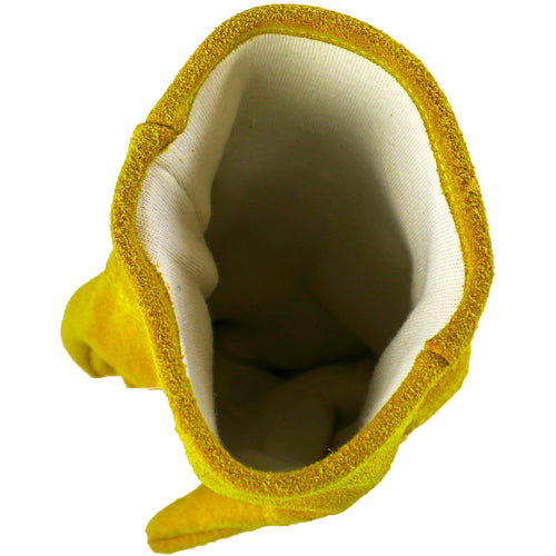 Catalog number: FCG-M Features: ● These are mid-sleeve flame-retardant gloves that protect above the wrist. ● You can prevent the gloves from getting lost by attaching a carabiner to your belt hook through the hook hole on the gloves. ● The inner lining is made of cotton, so it stays dry and reduces discomfort even when you sweat in the summer. ● Kevlar thread is used, so it is heat-resistant and durable. ● Made of oil-treated leather, these soft leather gloves are highly workable. ● These gloves can also be used for camping and outdoor activities. Uses: ● For welding work. ● For using a Dutch oven while camping, etc. Specifications: ●Color: Mustard ●Size: M ●Total length (cm): 25 ●Palm circumference (cm): 22 ●Middle finger length (cm): 7.5 ●Thickness (mm): 1.4 ●Material heat resistance temperature (℃): 80 ●Cuff length (cm): 9 ●With hook hole ●Material heat resistance temperature: 80℃ Material/Finish: ●Cowhide leather ●Cotton cloth Note: ●The thread in the hook hole may be loose due to the manufacturing process.