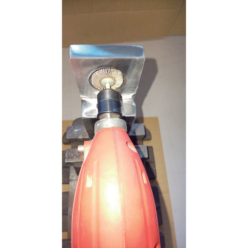 Catalog number: SK1505-60 Features: ●Ideal for machining and correcting small parts. ●Can be used for removing extremely small burrs. ●The thin design allows for pinpoint grinding like the tip of a pen. Applications: ●For grinding small workpieces. ●For grinding thin parts, grooves, screws, etc. ●Tools used: Micro grinder. (Air/electric) Specifications: ●Grain size (#): 60 ●Outer diameter (mm): 15 ●Width (mm): 5 ●Shaft diameter (mm): 3 ●Shaft length (mm): 30 ●Number of blades (pieces): Approximately 25 ●Maximum operating speed (rpm): 10000 ●Maximum operating speed: 10000rpm Material/Finish: ●Shaft: Steel Caution: ●Always wear protective gear such as a hard hat and safety glasses when working. ●Use at or below the maximum operating speed.