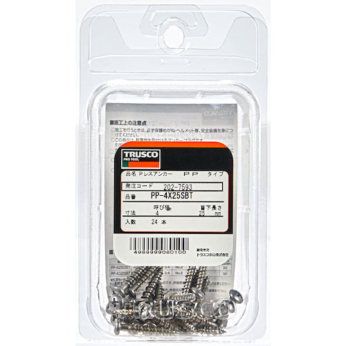 TRUSCO P-less anchor, pan head, stainless steel, 4 x 32, 18 pieces (for concrete, blocks, and wood/screw fixing type) PP-432SBT 1 PK