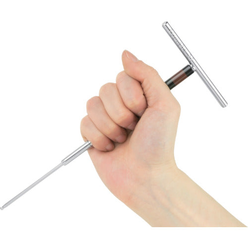 Catalog number: TL-10.0B Features: ● Fast tightening is possible with a quick rotation, and the long tip allows for tightening in deep places. ● Ball point type. Applications: ● Automobiles, bicycles, industrial machinery, furniture, etc. Specifications: ● Opposite side size (mm): 10 ● Shaft length (mm): 135 ● Overall length (mm): 313 ● Overall width (mm): 200 ● Opposite side (mm): 10 Material/Finish: ● Special alloy steel (surface treatment: hard chrome plating) ● Surface treatment: hard chrome plating Caution: ● This is a non-insulated tool. Turn off the power before use. ● Do not use for any other purpose. ● See other precautions on the product backing.
