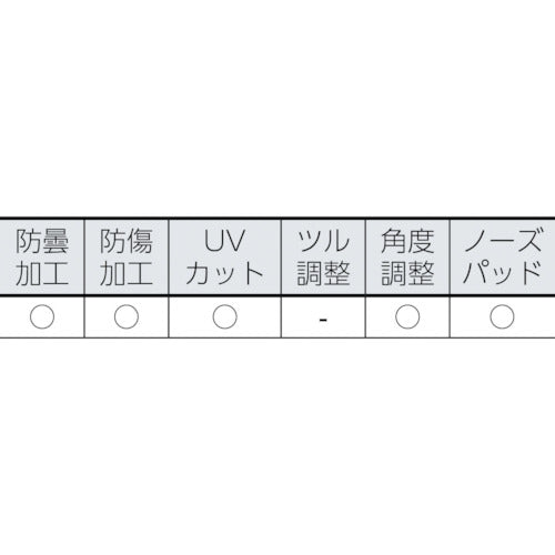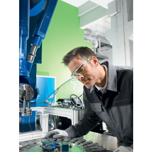 Catalog number: 9190209 Features: ●Soft material is used on the temples, nose pads, and other parts that come into contact with the face to provide an excellent fit. ●High-quality, durable anti-fog and anti-scratch coating. ●Metal-free. Applications: ●Machine assembly. ●Construction and maintenance work. ●Polishing and cutting. ●Metal and machining. ●Research and experiments. ●Forestry and agriculture. Specifications: ●Lens color: Clear ●Temple color: White ●Lens thickness (mm): 2.2 ●Coating: Excellence ●Anti-fog processing: Yes ●Anti-scratch processing: Yes ●UV protection: Yes ●Angle adjustment: Yes ●Nose pad: Yes ●JIS standard: Yes ●EN166 standard product ●Lens thickness: 2.2mm Material/Finish: ●Lens: Polycarbonate ●Frame: Polycarbonate, thermoplastic polyurethane, polyacetal, thermoplastic elastomer