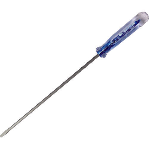 Catalog number: 6100-4-150 Features: ●Colorful crystal line pattern, color-coded with [+] and [-]. ●Thin shaft type suitable for tightening screws in tight spaces. Specifications: ●Blade tip: [-] 4 ●Shaft length (mm): 150 ●Total length (mm): 224 ●Tip magnet: included ●Fully hardened ●Tip: Magnet included Material/Finish: ●Shaft: Chrome vanadium steel ●Grip: Acetate resin Note: ●The shaft of 6100-0-200 is blackened.