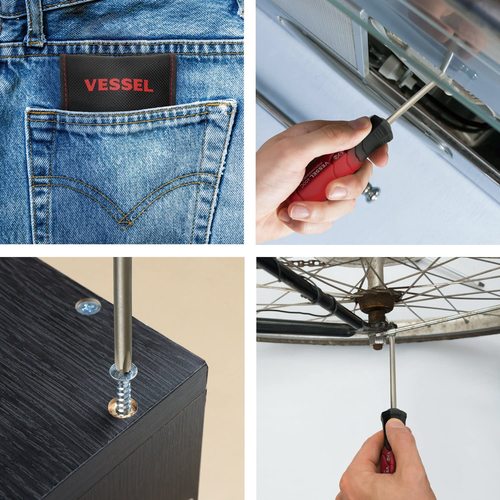 Catalog number: TD-2100 Features: ● A screwdriver set for everyday use, convenient for repairing and disassembling electrical appliances, toys, and equipment. ● The grip is octagonal, allowing for easy application of force, and is made of polypropylene resin, which is resistant to oil and chemicals. ● The interchangeable shafts are electroless nickel-plated to a thin thickness, improving fitting precision and allowing for a perfect fit to the screws. ● Includes a magnet to attract screws. ● Comes with a bag for compact storage. Uses: ● Car and motorcycle tools, everyday household tools, and portable tools for machine maintenance. For disassembly and assembly during repairs and maintenance, and for tightening screws at home. Specifications: ● Blade tip: [+] 1, [+] 2, [-] 4, [-] 6 ● Shaft length (mm): 91 ● Total length (mm): 191 ● Tip magnet: Included ● Set contents (pieces): 4 ● Set contents (pieces): 5 ● Handle diameter (mm): 30 ● Fully hardened ● Tip: Magnet included Material/Finish: ● Shaft: Special alloy steel ● Grip: Polypropylene resin ● Cloth bag (fabric): Polyester Set contents/Accessories: ● Detailed contents: Grip, 4 interchangeable shafts ([+] 1, [+] 2, [-] 4, [-] 6, cloth bag Caution: ● Be sure to check the correct application, size, and usage before using. ● Be careful of short circuits and electric shocks when working with electricity. ● Always check that the light is on before use. ● Use within the voltage detection range.
