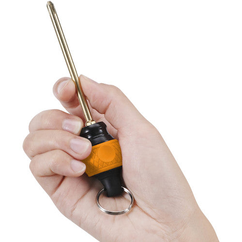Catalog number: QB-22Y Features: ● Same design shape as the grip of the ball grip driver and electric drill ball [R]. ● Available in a range of colors to match the grip of the ball grip driver. ● Lightweight design using reinforced plastic. ● The chuck slide has a cushion grip and is soft to the touch. ● Anodized to resist discoloration. ● Can be used as a driver by inserting a bit (for M4-sized small screws, tightening torque up to 2N・m). Uses: ● For carrying bits. ● For a wide range of work such as construction, electrical work, air conditioners and air conditioning, scaffolding assembly, and civil engineering. Specifications: Color: Yellow; Socket size (mm): 6.35; Total length (mm): 63; Width (mm): 28; Depth (mm): 28; Height (mm): 63; Maximum weight when installing Quick Catcher: 500g Materials/Finish: Body: Glass fiber nylon, ABS, elastomer; Sleeve: Aluminum; Ring: Spring steel (torque up to 2N・m) Caution: Maximum weight of installation tool is 500g. Do not use excessive force when using as a driver. Key adapters made by other companies cannot be installed on the Quick Catcher. Insert the bit all the way and make sure it does not come out before using. Hold the bit firmly when installing or removing to prevent it from dropping unexpectedly.