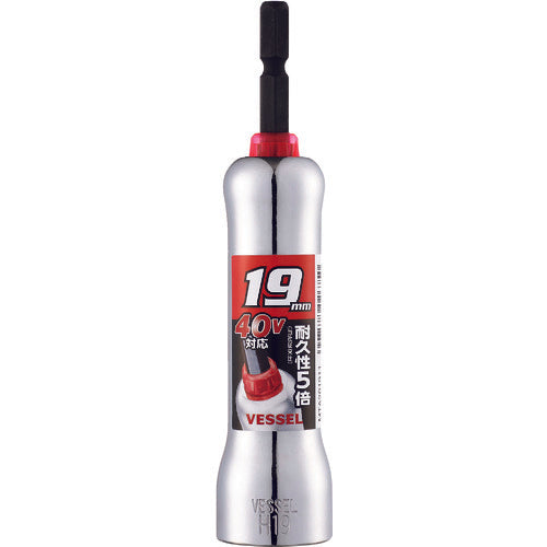 Catalog number: MTA201911 Features: ●Durability is 5 times higher. (Compared to the manufacturer's conventional SL series) (8 and 10 mm are 2.5 times more durable) ●Durability is improved by the new shock absorbing material and the torsion effect of the bit shaft. ●It is a surface contact type hexagonal socket. ●By pressing the resin molded one piece into the shaft, stress concentration on the shaft that occurs during impact is mitigated. ●Since it is a surface contact type socket, the corners are less likely to be damaged. ●Since it is a hexagonal socket, the contact area with the nut is wide and you can work stably. ●Sizes are divided by color, so it is easy to find. ●Streamlined design that fits in the palm of your hand. ●Mirror finish provides excellent rust prevention. Applications: ●Construction hardware, assembly and dismantling of formwork, maintenance of industrial equipment. Specifications: ●Face size (mm): 19 ●Shaft size (mm): 6.35 ●Total length (mm): 115 ●Face shape: Hexagonal ●Type: Long ●Outer diameter (mm): 25 ●Shank diameter (mm): 6.35 ●Seal/resin color: Red ●Compatible with 40V impact ●Patent registered Material/Finish: ●Body: Chrome vanadium steel (Cr-V) ●Shaft: Bit material ●Damper: Resin Caution: ●Please read the instruction manual of the power tool carefully before use. ●Always wear protective glasses when working. ●When installing or replacing bits, make sure to turn off the power source. ●Do not use if there are any abnormalities such as cracks, chips, wear, or deformation. ●Never install the tool on a power tool and run it idly.