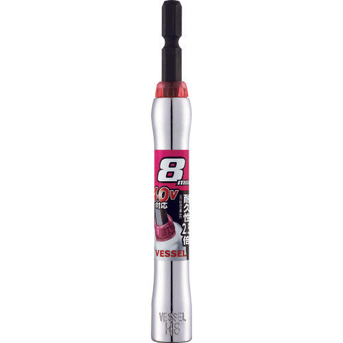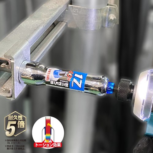 Catalog number: MTA200811 Features: ●Durability is 5 times higher. (Compared to the manufacturer's conventional SL series) (8 and 10 mm are 2.5 times more durable) ●Durability is improved by the new shock absorbing material and the torsion effect of the bit shaft. ●It is a surface contact type hexagonal socket. ●By pressing the resin molded one piece into the shaft, stress concentration on the shaft that occurs during impact is mitigated. ●Since it is a surface contact type socket, the corners are less likely to be damaged. ●Since it is a hexagonal socket, the contact area with the nut is wide and you can work stably. ●Sizes are divided by color, so it is easy to find. ●Streamlined design that fits in the palm of your hand. ●Mirror finish provides excellent rust prevention. Applications: ●Construction hardware, assembly and dismantling of formwork, maintenance of industrial equipment. Specifications: ●Face size (mm): 8 ●Shaft size (mm): 6.35 ●Total length (mm): 115 ●Face shape: Hexagonal ●Type: Long ●Outer diameter (mm): 14 ●Shank diameter (mm): 6.35 ●Seal/resin color: Purple ●Compatible with 40V impact ●Patent registered Material/Finish: ●Body: Chrome vanadium steel (Cr-V) ●Shaft: Bit material ●Damper: Resin Caution: ●Please read the instruction manual of the power tool carefully before use. ●Always wear protective glasses when working. ●When installing or replacing bits, make sure to turn off the power source. ●Do not use if any abnormalities such as cracks, chips, wear, or deformation are found. ●Never install the tool on a power tool and run it idly.