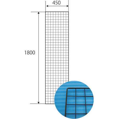 Catalogue number: EMP014 Features: ●Mesh panel for hanging things. ●Storage space without drilling holes in the wall. ●Grids are 50mm square. ●Inner diameter 3φ: outer diameter 6φ Uses: ●Use with hooks to store tools and tape measures. ●To organize warehouses. ●For storage and partitions at home. Specifications: ●Color: Black ●Width (mm): 450 ●Height (mm): 1800 ●Thickness (mm): 6 ●Name: Mesh panel ●Load capacity (kg): 10 ●Surface finish: Epoxy powder coating Materials/Finish: ●Steel (epoxy powder coating) ●Outer frame: φ6mm ●Net section: φ3mm Note: ●Load capacity varies depending on installation method.