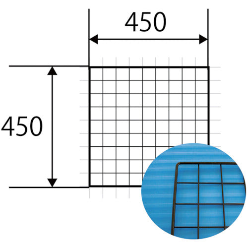 Catalogue number: EMP026 Features: ●Mesh panel for hanging things. ●Storage space without drilling holes in the wall. ●Grids are 50mm square. ●Inner diameter 3φ: outer diameter 6φ Uses: ●Use with hooks to store tools and tape measures. ●To organize warehouses. ●For storage and partitions at home. Specifications: ●Color: Black ●Width (mm): 450 ●Height (mm): 450 ●Thickness (mm): 6 ●Product name: Mesh panel ●Load capacity (kg): 10 ●Surface finish: Epoxy powder coating ●Load capacity: 10kg Materials/Finish: ●Steel (epoxy powder coating) ●Outer frame: φ6mm ●Net section: φ3mm Note: ●Load capacity varies depending on installation method.