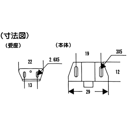 Catalog number: VB-040 Features: ●Opens and closes with a soft touch. Uses: ●For wooden furniture doors. Specifications: ●Color: White ●Total length (mm): 29 ●Mounting pitch (mm): 19 ●Receptacle: Yes ●Specifications: Small ●Wood screws (mm): 2.7φ×13 Material/Finish: ●Polyethylene Set contents/Accessories: ●Receptacle Caution: ●When installing, use a drill bit to drill pilot holes to prevent cracking of the wood and damage to the screws. ●The product illustrations in the dimensional diagram may differ from the actual shape.