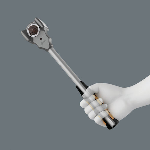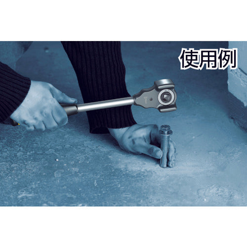 Catalogue number: 003692 Features: ●An innovative, sturdy ratchet handle that can also be used as a hammer. ●The forward and reverse rotation can be changed by pushing the socket in the opposite direction with one push. ●The ratchet can withstand a load of at least 600N. ●With 60 gears, it rotates smoothly in 6° increments. ●There is a socket at the end of the grip, and it can be extended with an extension bar sold separately. ●Comes with a soft pad (head rubber) that can be attached to the striking surface. Specifications: ●Number of teeth (pieces): 60 ●Socket size (mm): 12.7 convex ●Total length (mm): 341 ●Extension bar sold separately: 003695 Material/Finish: ●Special tool steel Set contents/Accessories: ●Head rubber ●Storage pouch