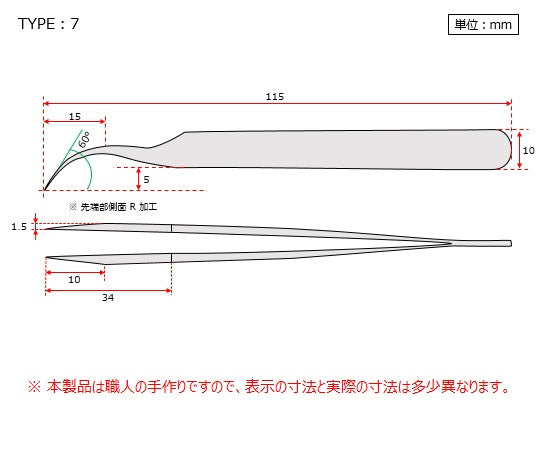 The tip is gently curved and sharp, making it suitable for fine work. Model number: 7-TNF