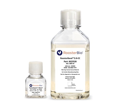 This product has been adopted by various users around the world (customers wishing to culture hMSCs in large quantities, regenerative medicine researchers, translational research institutions). Size: 500mL (RoosterBasal 2.0-CC, model number M22520), 10mL (RoosterBooster-MSC-XF, model number: SU-016)