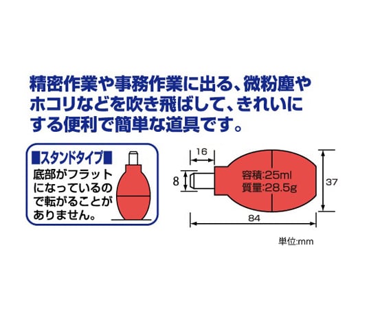 크기: 직경 37×84mm 무게: 28.5g 양: 25ml 재질: 본체: 고무, 노즐: ABS 수지 정밀 작업시, 사무 작업시의 미세먼지의 날려 버린다. 밑면이 평평하게되어 있기 때문에, 세워 둘 수 있습니다. 작고 가볍습니다. 코드 품번: EA653BC