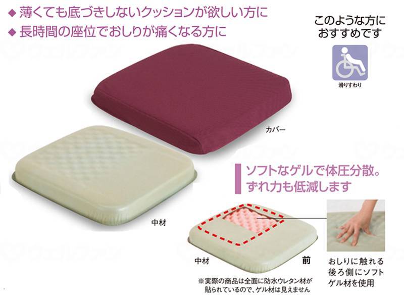 ○ 요철 형상의 겔과 우레탄의 조합에 의해, 에너지 흡수성을 유지한 채로, 체압을 분산시키는 효과도 있습니다.