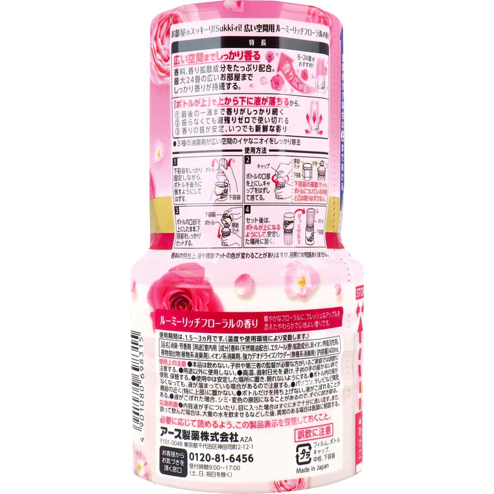 【아울렛】 방의 깨끗이! Sukki-ri! 넓은 공간용 루미 리치 플로랄 향기 400mL 1개