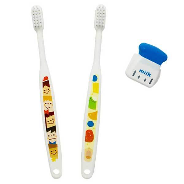 「6세~12세용 칫솔×2개」+「버라이어티 칫솔 캡」이 붙은 이빨 세트. 【아울렛】