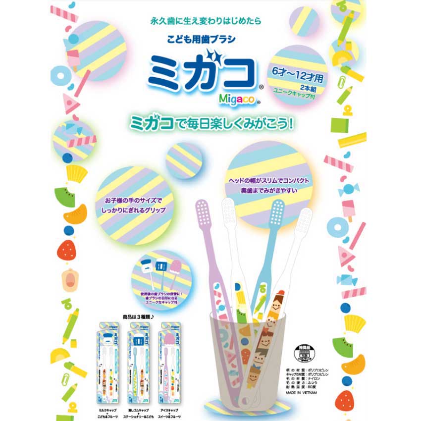 【아울렛】어린이용 칫솔 미가코 어린이+과일 6-12세용 허브 2개+캡 1개 1개