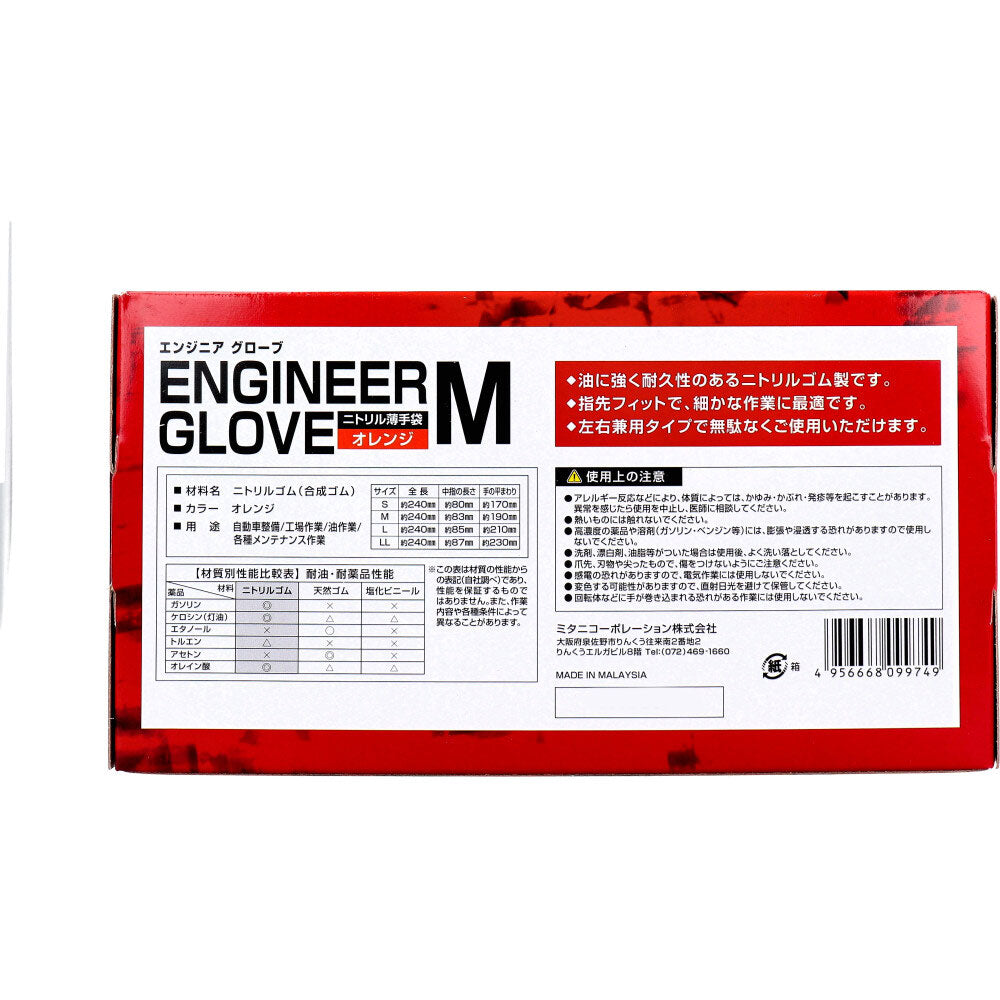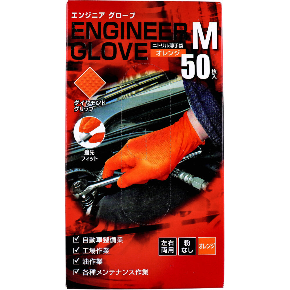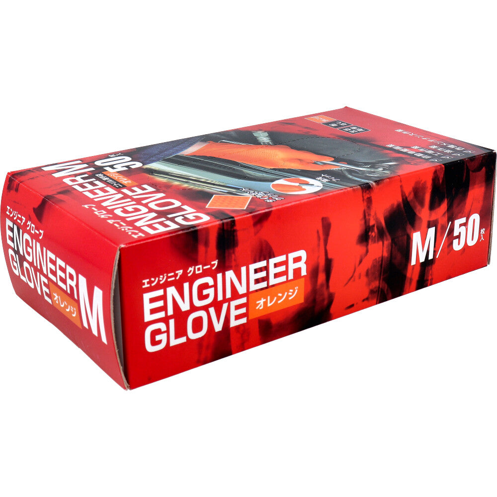【아울렛】【업무용】엔지니어 글로브 니트릴 얇은 장갑 가루 없음 좌우 양용 오렌지 M사이즈 50장입 1개