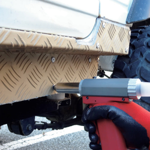 카탈로그 품번:2004000008989 특징:●많은 리벳을 연속해서 박을 때에, 일정한 힘으로 확실히 박을 수 있는 에어 리베터입니다. ● 유압 피스톤으로 조용하고 부드럽게 작동하여 힘이 필요없는 조작이 가능합니다. ● 스틸 리벳, 알루미늄 리벳에 사용할 수 있습니다. ● 스위블 커넥터로 에어 호스의 비틀림을 방지합니다. 사양:●사용 노즈피스:φ2.4, φ3.2, φ4.0, φ4.8mm●필요 공기압(MPa):0.5~0.7●대응 리벳 사이즈(mm):Φ2.4, Φ3.2, Φ4.0, Φ4.8 ●본체 사이즈:L240×W90×H280mm(약 3개 피스 장착시) ●스트로크량:18mm ●공기 소비량 1.3 L/스트로크
