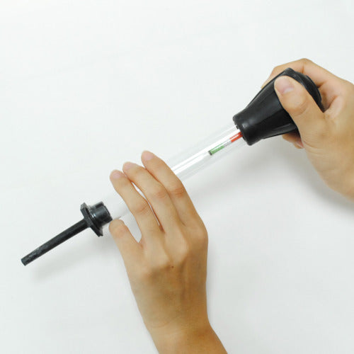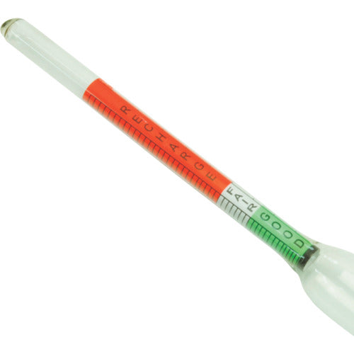 카탈로그 품번:2001000001255 특징:●스포이트식 용도:●배터리 교환의 기준이 되는 비중계 사양:●전체 길이:290mm ●지름(원통 부분):φ22mm ●측정 범위:1100~1300 ●정도:±0.02% 주의:●※본래의 용도