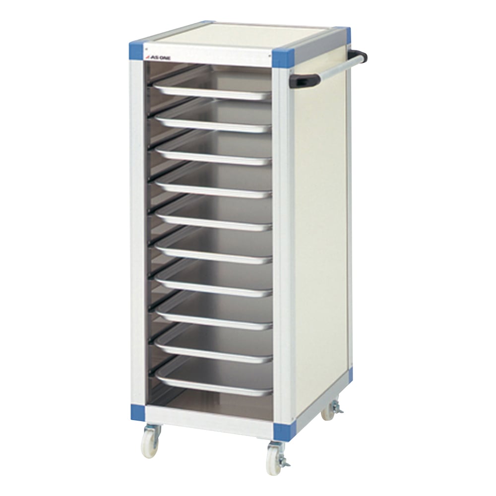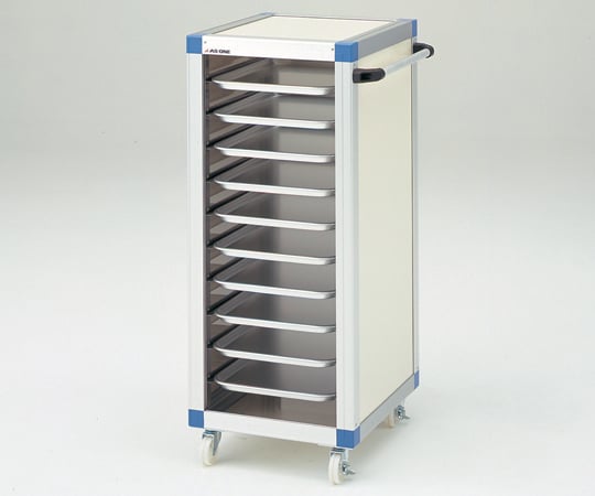 빼고 꽂을 수 있는 알루미늄 트레이를 선반에 한 캐스터 첨부 왜건입니다. 재질:본체 프레임・트레이/내식 알루마이트 처리 알루미늄, 천판・측판・저판/PVC(염화비닐 수지) 캐스터:φ65mmPA(나일론)제(스토퍼×2개 첨부) 트레이 외부 치수: 308×418×22mm 트레이 간격: 75mm 총 내하중:약 50 kg, 트레이 내 하중/약 5 kg/장 무게: 16kg 부속 트레이 수:10장 사이즈(mm):397×460×965 트레이 수납수:10단×1열 RoHS2 (EU) 2015/863 대응 [RoHS 소개]