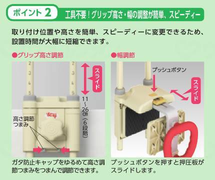○공구 불필요! 그립 높이・폭의 조정이 간단, 스피디