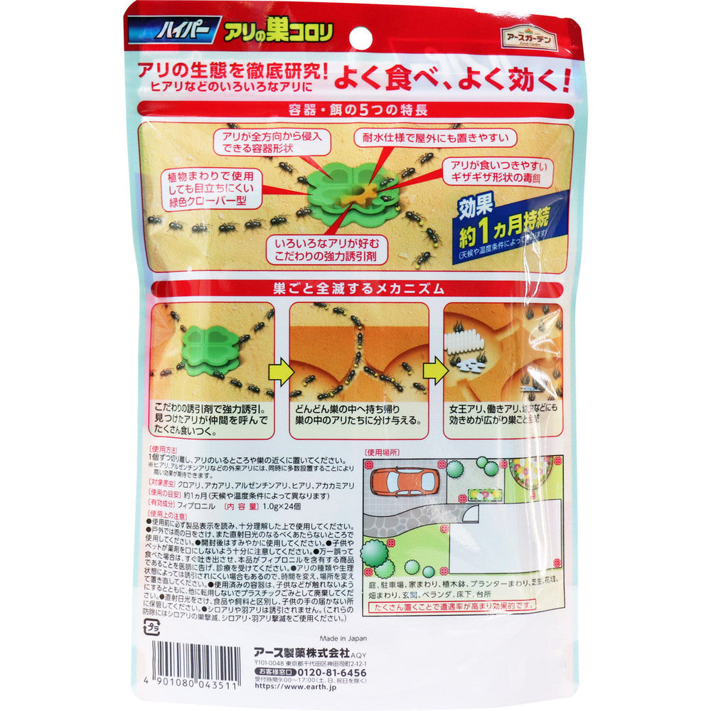 개미의 둥지 콜로리의 유인력을 강화한 초강력 유인 타입. 정원 전체 개미의 둥지에! 어떤 개미도 먹는 유인 독 먹이제로, 정원 전체의 개미의 둥지를 퇴치합니다.