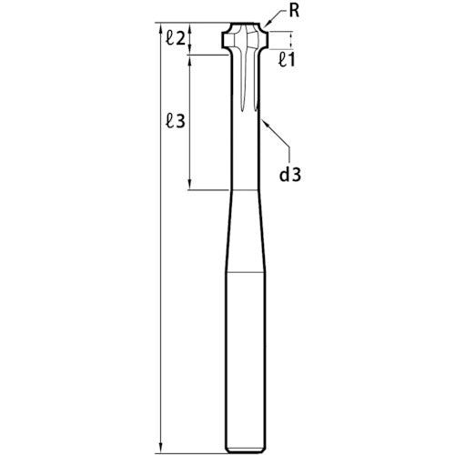 카탈로그 품번:WMRC03029L12R05 특징:●드릴 구멍・기계 가공면의 앞뒤의 R 모따기를 할 수 있습니다. 용도 : ● 드릴 구멍 · 기계 가공면의 뒷면의 R 모따기에. 사양:●날수(매):2●전장(mm):60●샹크 지름(mm):3●L1(mm):1.85●L2(mm):3●L3(mm):12●d3(mm):1.65●날수:2●표면 처리:TiAICN 코팅 ●R:0.02:0.5●유효 날 미립자 초경 + TiAlCN 코팅