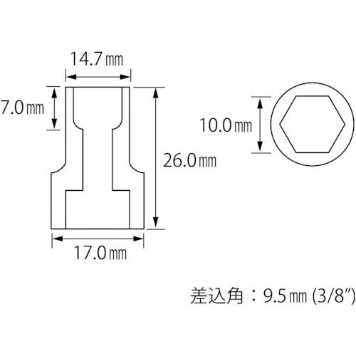 새우 소켓 6각 10.0mm 삽입각 9.5mm LM310S 1개