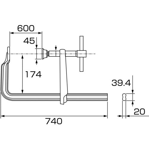 새우 L형 클램프 새우 만력 바 핸들 초강력형 600mm×174mm BP6017A 1 쵸