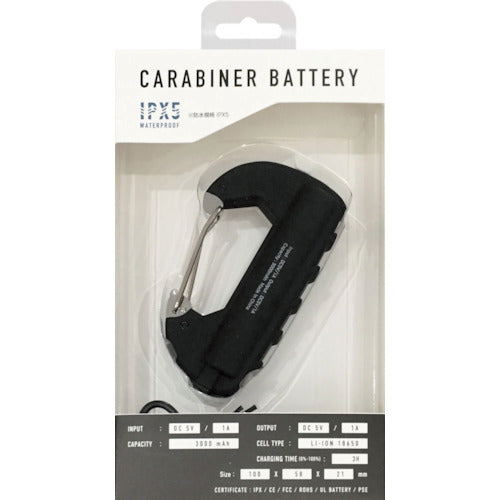 카탈로그 품번:CRB-003 특징:●가방이나 배낭에도 걸리는 카라비나형의 모바일 배터리입니다. ●방수 성능도 있어, 이동이나 아웃도어 등 다양한 씬으로 사용할 수 있습니다. 사양:●용량(mAh):3000 ●폭(mm):58 ●깊이(mm):21 ●높이(mm):100 ●색:코요테 ●정격 입력:DC5V/1A 정격 출력:DC5V/1A 배터리 용량:3000mAh 충전 시간:약 3시간 방수 성능:IPX