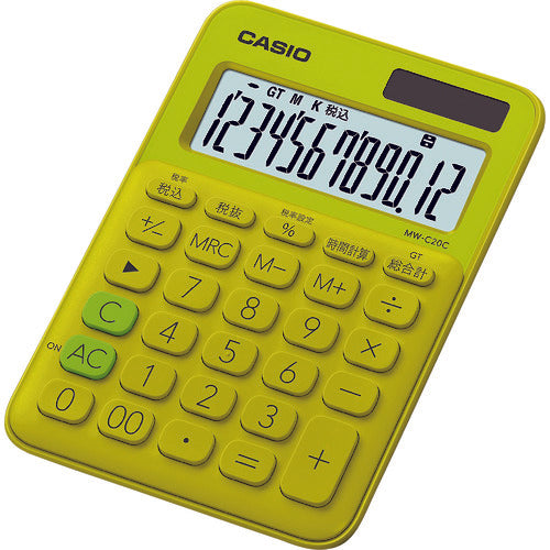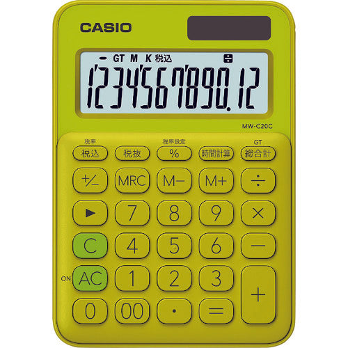 카시오 카시오 미니 저스트형 다채로운 계산기 라임 그린 MW-C20C-YG--N 1대