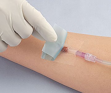 투석 유치 바늘의 천자 부위의 고정용 필름.