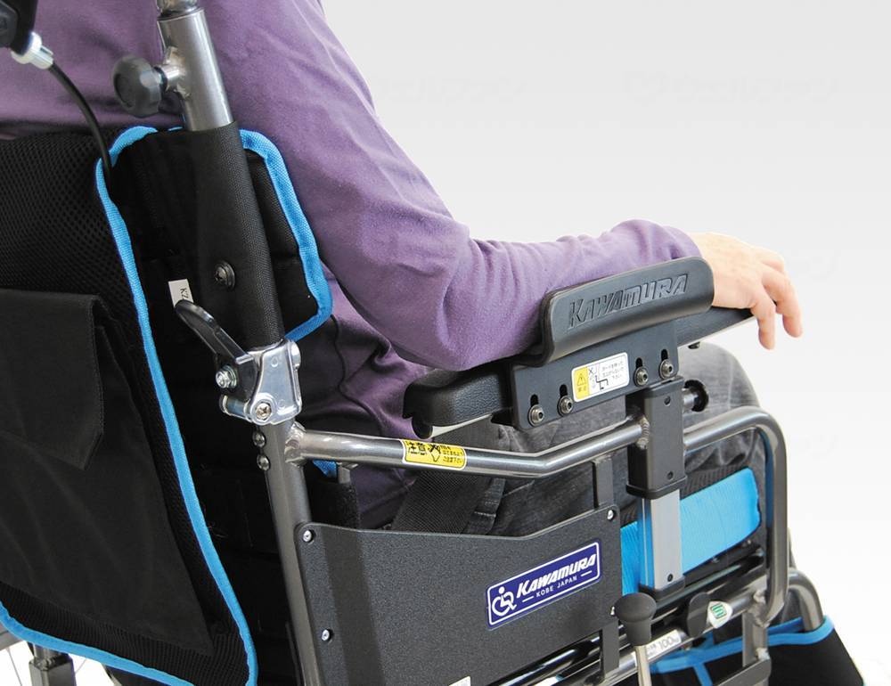 휠체어에서 팔이 떨어지는 것을 방지합니다.