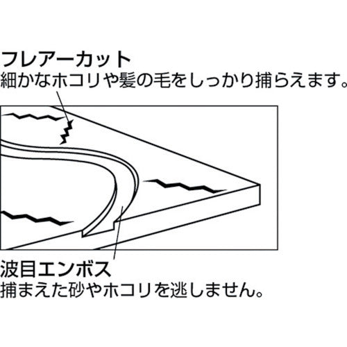카탈로그 품번:C75-15-045X-MB 특징:●물결 엠보싱과 플레어 컷으로 바닥의 모래와 먼지를 확실히 캐치합니다. 용도: ●P 타일이나 바닥재 등 하드 플로어의 제진 청소. 사양:●폭(mm):475 ●길이(mm):200