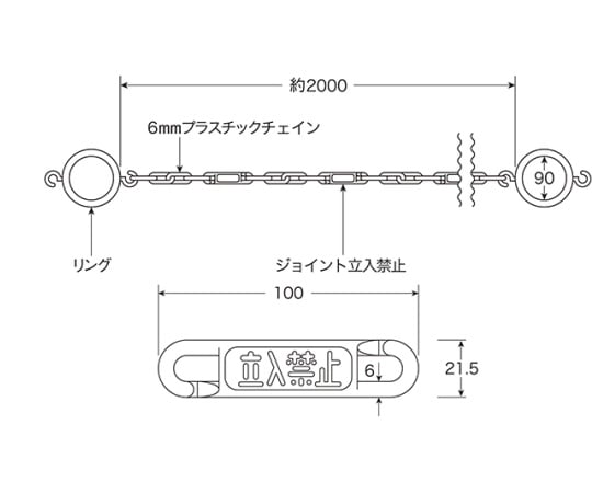 사이즈:체인 길이/약 2m, 선경/Φ6mm, 링 부분/내경 Φ90mm, 두께/12mm