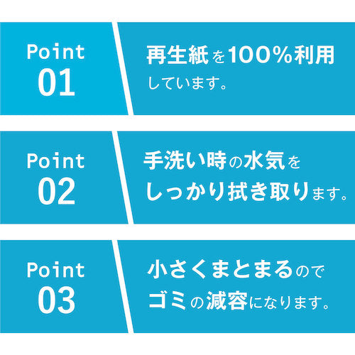 카탈로그 품번:51847 특징: ●화장실시의 물기를 확실히 닦아냅니다. ●작게 정리하므로 쓰레기의 감용이 됩니다. 사양:●시트 사이즈(mm):170×220 ●색:화이트 ●케이스 입수:200장×42팩 재질/마무리:●재생지