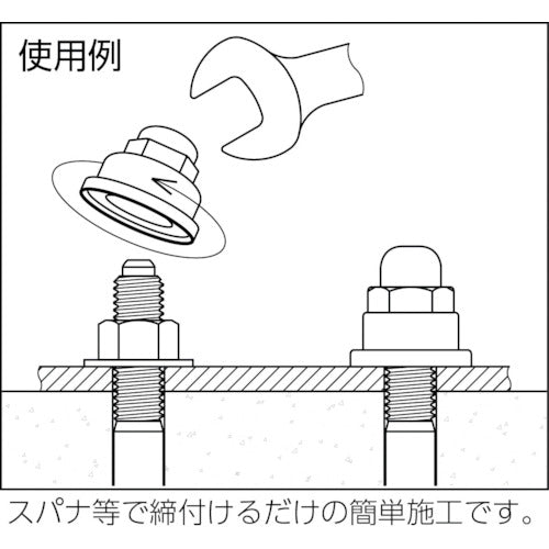 카탈로그 품번:ZHS-20X30 특징:●전기 방식 효과로, 장기에 걸쳐 올 앵커를 녹으로부터 지킵니다. ● 유지 보수 비용을 크게 줄일 수 있습니다. ● 스패너 등으로 조이는 것만의 간단한 시공입니다. ● 간단 시공으로 내식성과 미관을 향상시킵니다. ● 전기방식 효과로 장기간에 걸쳐 녹으로부터 보호합니다. ●스패너 효과로 조이는 것만의 간단 시공입니다. 용도 : ● 올 앵커 용 부식 방지 캡. ●올 앵커용 ●올 앵커의 부식 보호 등 사양:●나사의 호칭:M20용 ●체결 토크(N・m):140.0●육각 대변(mm):30●사용 범위(mm):20.5~23.0●상자입 재질/마무리:●9극 아연 합금 안쪽(금속과의 접촉면)을 도료나 기름 등으로 더럽히지 않도록 하십시오.